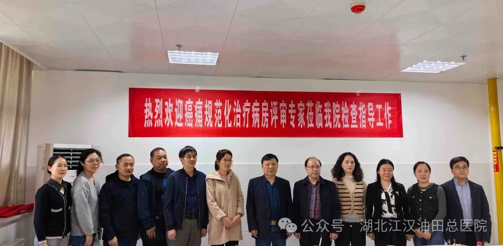 10月30日下午,湖北省“癌痛规范化治疗示范病房”创建评审团莅临我院进行现场评审。本次评审由武汉市中心医院肿瘤科主任卢宏达教授担任专家组组长,成员包括武汉协和医院赵艳霞教授,武汉大学人民医院肿瘤中心万永慧护士长,湖北省肿瘤医院药学部刘斌主任,潜江质控中心李文斌主任等资深专家。